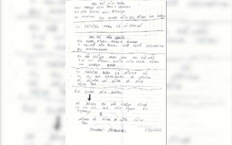 Adolescente que pediu socorro por bilhete já havia sido enforcada pelo pai, diz conselho A adolescente de 16 anos que pediu socorro para colega de escola por meio de um bilhete já havia sido enforcada pelo pai no início deste ano, informou a conselheira tutelar de Aparecida de Goiânia, Élita Arantes. No bilhete escrito pela vítima, ela cita que o pescoço estava vermelho. ✅ Clique e siga o canal do g1 GO no WhatsApp “Teve uma tentativa de enforcamento, após ele ter descoberto fatos improcedentes no celular da jovem. Esse pai de forma muito agressiva foi abordar a adolescente nesse sentido”, contou a conselheira tutelar, em entrevista à TV Anhanguera. O bilhete foi entregue ao Conselho Tutelar no dia 14 deste mês. O nome do suspeito não foi divulgado e, por isso, o g1 não obteve o contato com a defesa para um posicionamento. Segundo a conselheira, a colega da vítima apresentou o bilhete à escola onde as duas estudam. Em seguida, a instituição de ensino notificou o Conselho Tutelar. LEIA TAMBÉM: Adolescente pede socorro em bilhete enviado a colega ao revelar ter sido agredida pelo pai Adolescente que escreveu bilhete de socorro a colega pediu para morar com avó para escapar de agressões do pai ‘Meu pai me bateu’ e ‘quase me deu um tiro’: veja relato da adolescente que escreveu bilhete pedindo socorro a colega Adolescente pede socorro em bilhete enviado a colega ao revelar ter sido agredida pelo pai em Aparecida de Goiânia, Goiás Reprodução/TV Anhanguera Escrito no dia 13 de abril, o bilhete constava o relato das agressões sofridas pela adolescente, que preferiria morar com a avó. Ela declarou que não consegue morar com o pai e que ele quase a matou. “Eu não consigo morar com meu pai, não. Ele já me falou que queria me dar um tiro na cabeça. Eu prefiro morar com a minha avó, ela cuida muito bem de mim”, declarou em bilhete. Segundo apurou a TV Anhanguera, quando policiais foram à casa da família no bairro Papilon, o pai foi preso por porte e posse ilegal de arma de fogo. Ainda conforme a reportagem, ele admitiu as agressões. 📱 Veja outras notícias da região no g1 Goiás. VÍDEOS: últimas notícias de GoiásAcompanhe mais notícias em nosso site.
